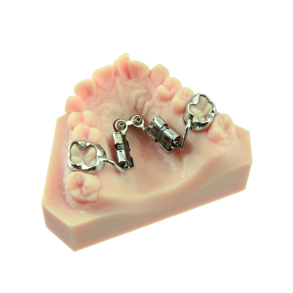 The flat shape of the bodies and the small size make these expanders suitable for the digital design of a distalizer that utilises the principles of the Leaf expanders by constantly releasing a 600g force. The 3DLeone Designer software provides the anchorage with a Nance button and the version with TADs for bone anchorage.
